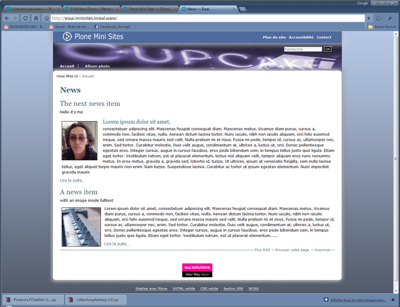 The Mini Site has a theme : you can choose a theme and modify it easily after Mini Site creation. You can also reload a new theme for the mini site. For themes we use collective.phantasy which permits to change some skin properties, to add a css in a skin, to overload static viewlets (colophon, logo, footer) and to select which dynamic viewlets you want to display. The plone administrator can add new themes in the theme's repository, these new themes can be browsed at MiniSite creation/edition time.