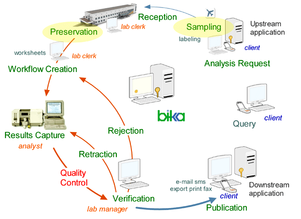 Bika is a LIMS, short for Laboratory Information Management System. It is developed using Archetypes and is deployed with roles and workflows tailored for laboratories.