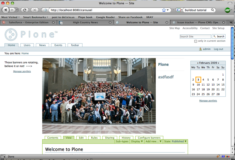 - Banners rotate via a simple fade effect every 8 seconds. This is implemented using the jQuery javascript library which is included with Plone, so it's pretty lightweight.