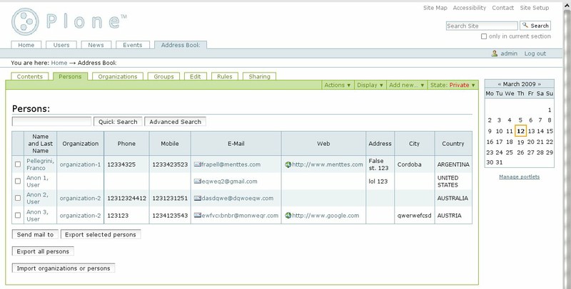 This is a Plone product that provides an address book where you can add persons, organizations and groups of persons.