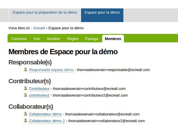 Provides a "Members" tab on selected content types. The view a the list of members having a role on the content, sorted by role.