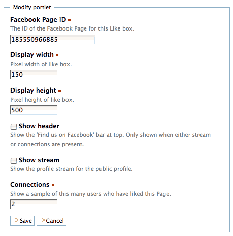 Like boxes are implemented in IFrames, and require specification of pixel width and height. These are among the portlet's configurable properties.
