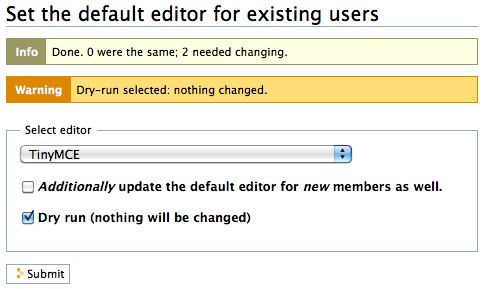 On the same form you can also select to set the default editor for new users at the same time as changing it for existing users.