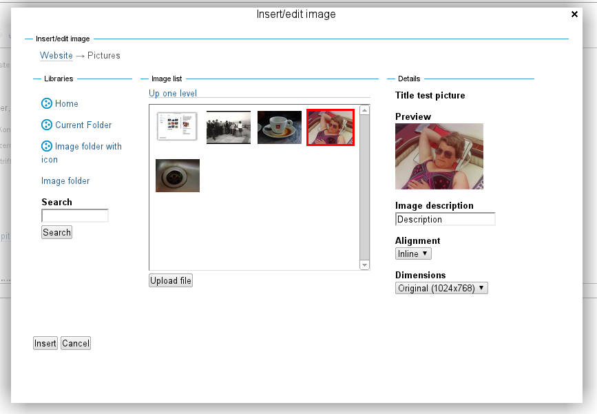 A TinyMCE plugin to provide thumbnail image browsing and a ressource library