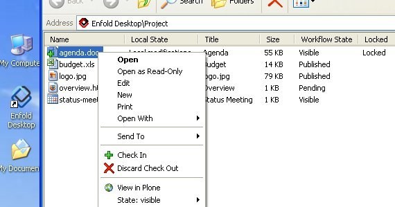 Enfold Desktop creates a Windows Explorer interface into Plone. In your standard desktop environment, you can now add, edit and interact with your Plone server and the content!