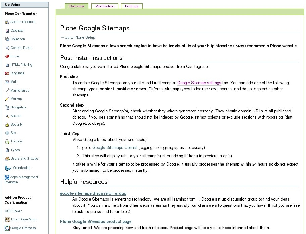 Plone Google Sitemaps allows you to enable different kinds of Google Sitemaps on your Plone website. Such Sitemaps help Google identify site URLs and the data under each site section. With Google Sitemaps enabled, search engines could track your Plone site URLs faster and more efficiently, optimizing their search by placing all the information on one page.