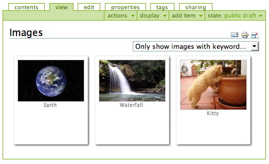 - It comes complete with a Kupu "library", meaning you can browse the keywords through the Kupu image insertion dialog to make it easy to locate images even in a large collection of images.