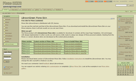 - Plone Skin LBrownGreen download link: http://prdownloads.sourceforge.net/quintagroup/qPloneSkinLBrownGreen-1.3.zip?download