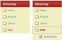 Installs a portlet that shows the sitemap in a portlet. Content of folders shows when mouse moves over.