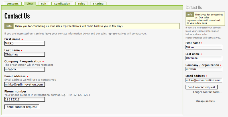 The main feature of this add-on product is a new contact form, available as standalone and a portlet, which will directly deliver contacts to Zoho CRM where your sales representatives can pick them up and handle according to their workflow.