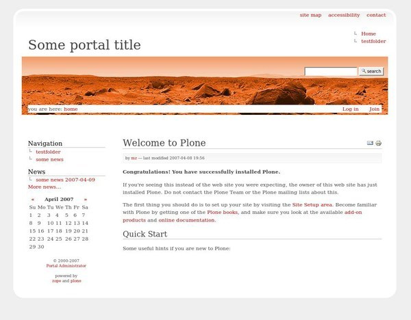 MzRedPlanet is a product that adds a new style to a Plone 2.5.x portal. The minimum screen resolution for this theme is 1024x768. MzRedPlanet is based on DIYPloneStyle 2.5, a skeleton product ready for building new graphical designs for Plone.
