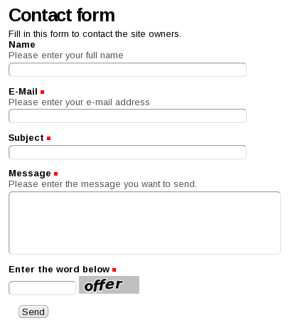 With these products installed captchas will be added to Plone's 'Send this', 'Contact Us' (/contact-info) forms, and Plone's default discussion mechanism: 'Add Comment' and 'Reply' forms.