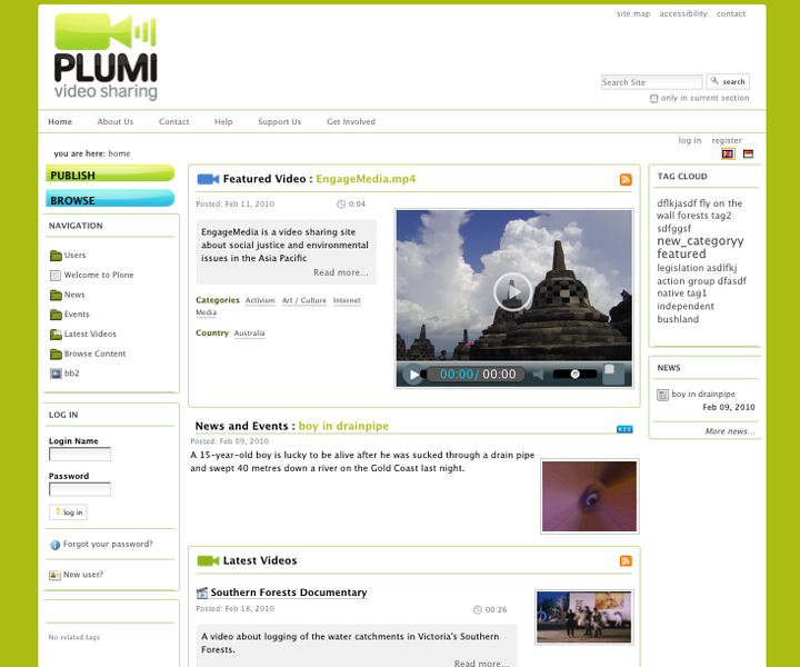 On top of the out-of-the-box Plone functionality Plumi adds the following features: