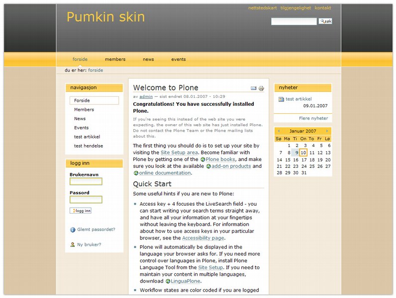 A pumpkin / Halloween colored skin with fixed width and easy usability for the visitor.