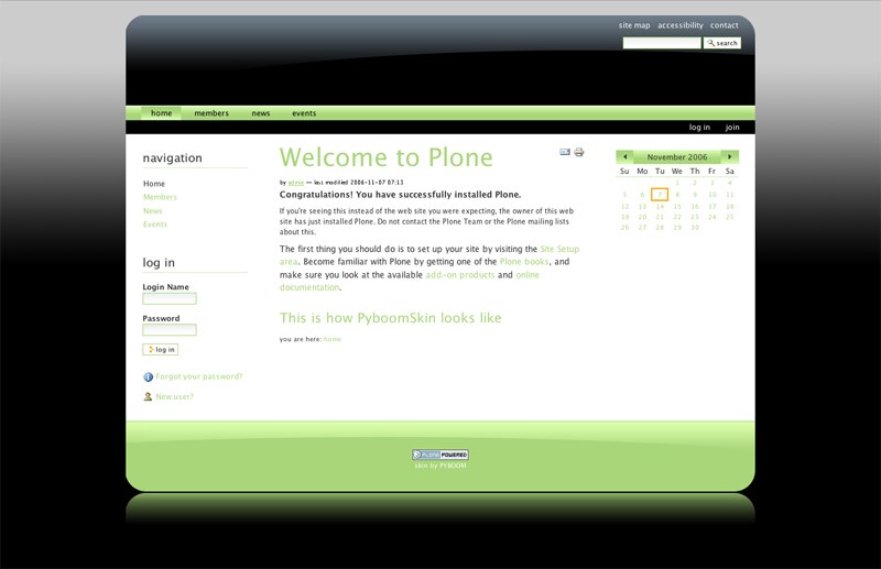PyboomSkin is based on DIYPloneStyle 2.1, a skeleton product ready for building new graphical designs for Plone.