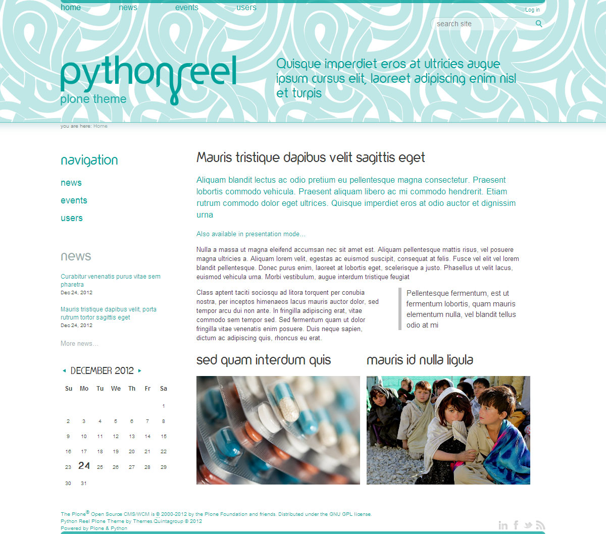 - See demo of Python Reel Plone Theme: http://plone-demo.quintagroup.com/