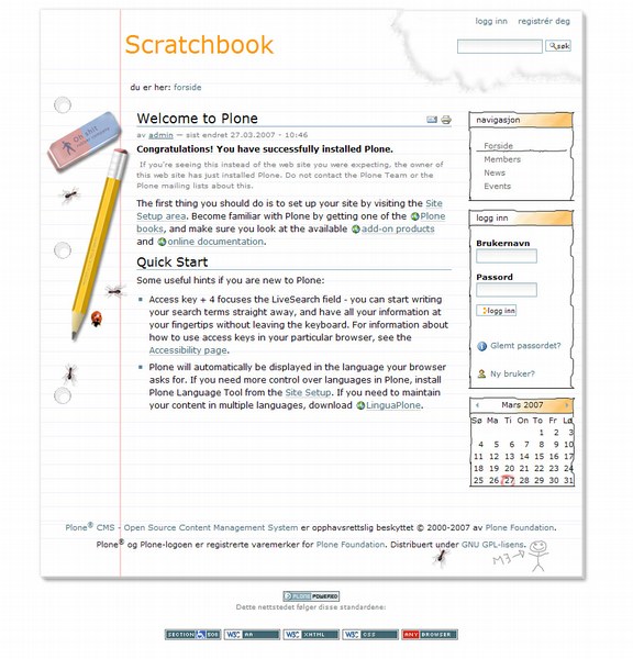 A scratch book looking skin for Plone. Complete with pencil, rubber and ants (or bugs if you prefer..)