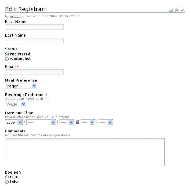 SignupSheet is an add-on product for Plone that allows website managers to create custom registration forms for events, workshops, fundraisers and other events that require online registration.