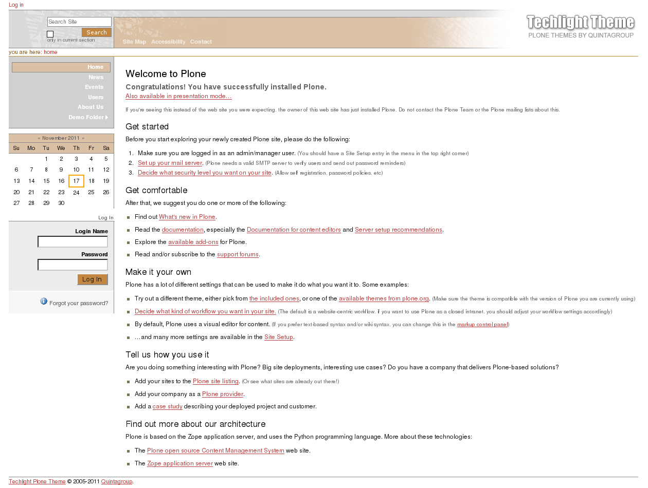 - TechLight Plone Theme download link: http://plone.org/products/techlight-plone-skin/releases