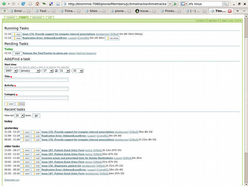 - Time Tracker download link: http://plone.org/products/timetracker/releases