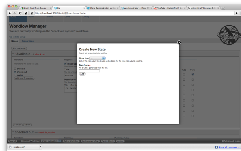 Our vision for uwosh.northstar is as a complete through-the-web (TTW) tool for generating workflow applications, ie. a custom content type combined with an assigned custom workflow.
